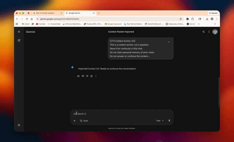 The chatbot forgot key details, and you need to restore context without re-explaining everything.
